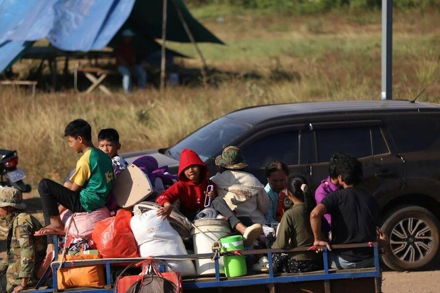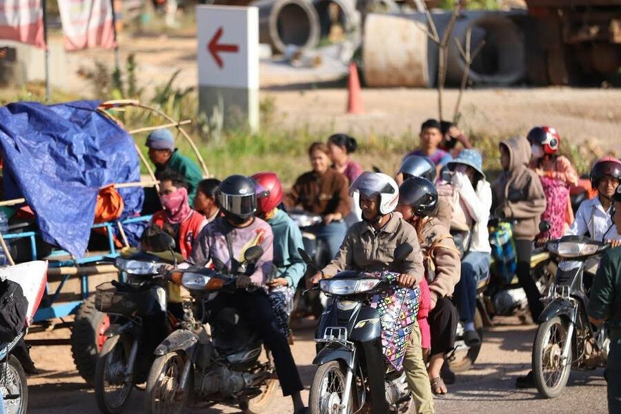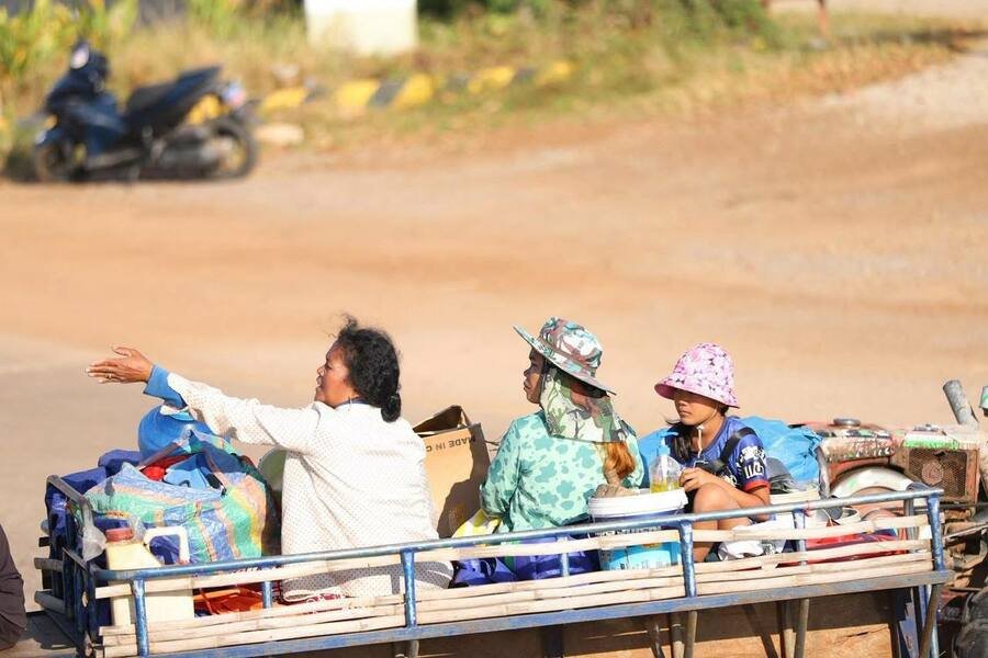 ទិដ្ឋភាពរបស់បងប្អូនប្រជាពលរដ្ឋខេត្តឧត្តរមានជ័យ ជម្លៀសទៅកាន់ទីទួលសុវត្ថិភាពនៅព្រឹកថ្ងៃទី៨ ខែធ្នូ ឆ្នាំ២០២៥។