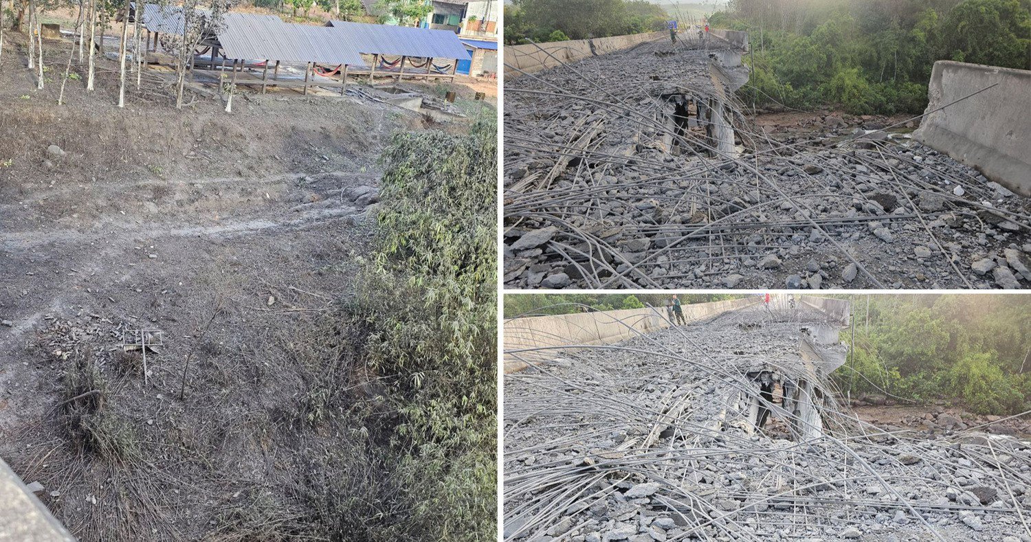 ទាហានថៃប្រើប្រាស់យន្តចម្បាំងហោះ F-16 ចំនួន ២គ្រឿង ទម្លាក់គ្រាប់បែកផ្តាច់ស្ពានជ័យជំនះ (ស្ពានមេទឹក) នៅភូមិសាស្រ្តថ្មដា
